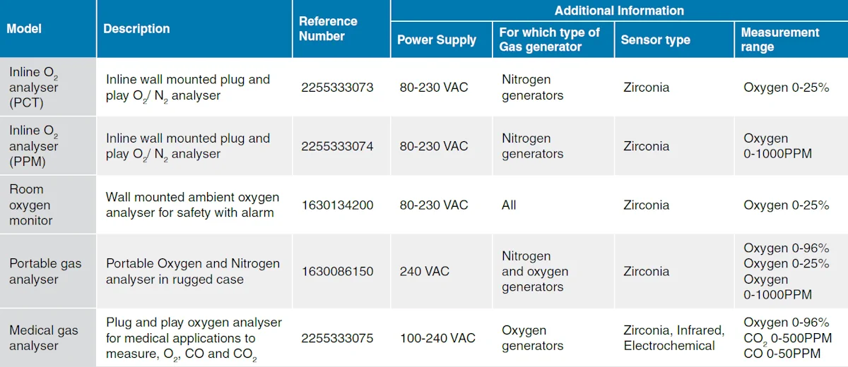 Bu analizör, operatörlere N2 veya O2 jeneratörlerinin saflığını bağımsız olarak ölçme imkanı verir ve diğer sensörlerin güvenilirliğini doğrulamak için çift kontrol sağlar.