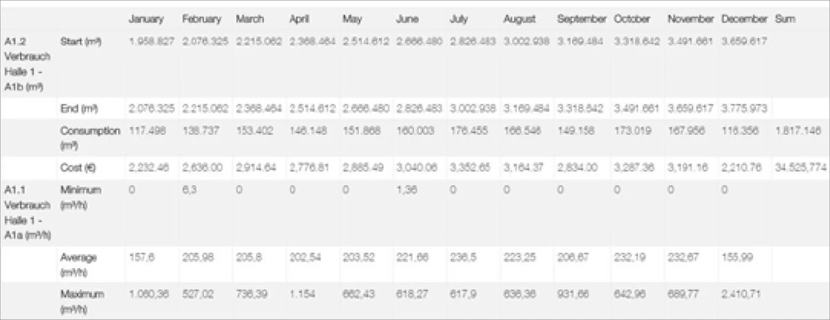 Yazılım, bağlı tüm akış sensörleri için günlük, haftalık veya aylık olarak seçilebilecek tüketim raporu oluşturur.