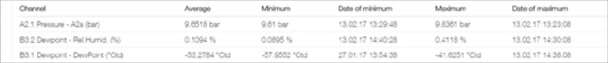 Tüm gerekli istatistik verileri tek bakışta görülebilir. Kullanıcı, minimum veya maksimum ölçüm değerlerinin ne zaman ve ne kadar süreyle gerçekleştiğini hızlıca görebilir.